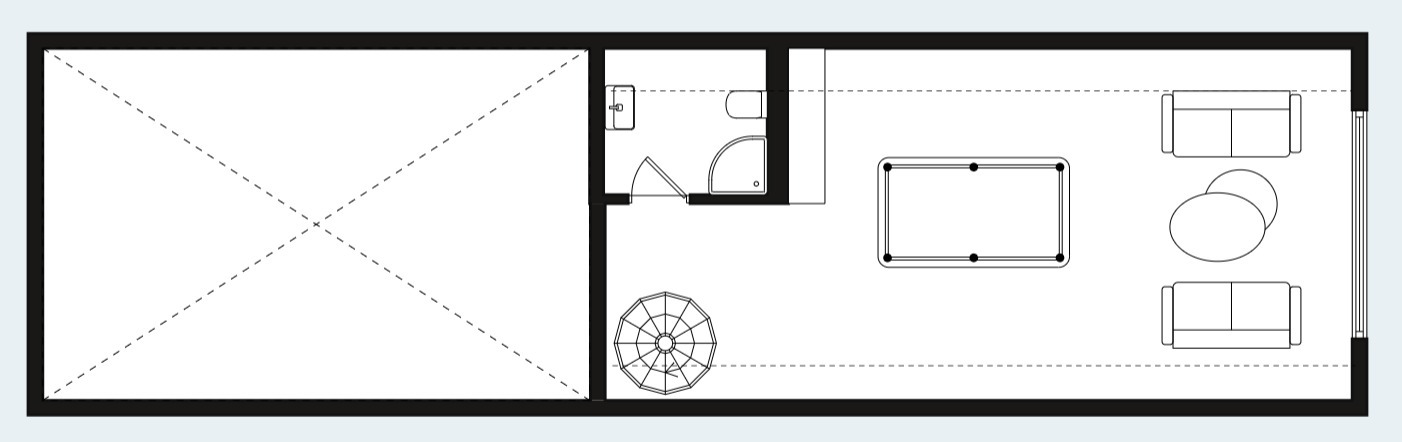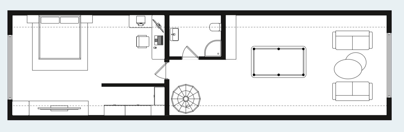 Dom DEX136 posiada powierzchnię parteru powierzchni użytkowej 136 m², który oferuje ogromny salon z panoramicznymi oknami, połączony z kuchnią, 4 niezależne sypialnie, łazienkę i WC.
